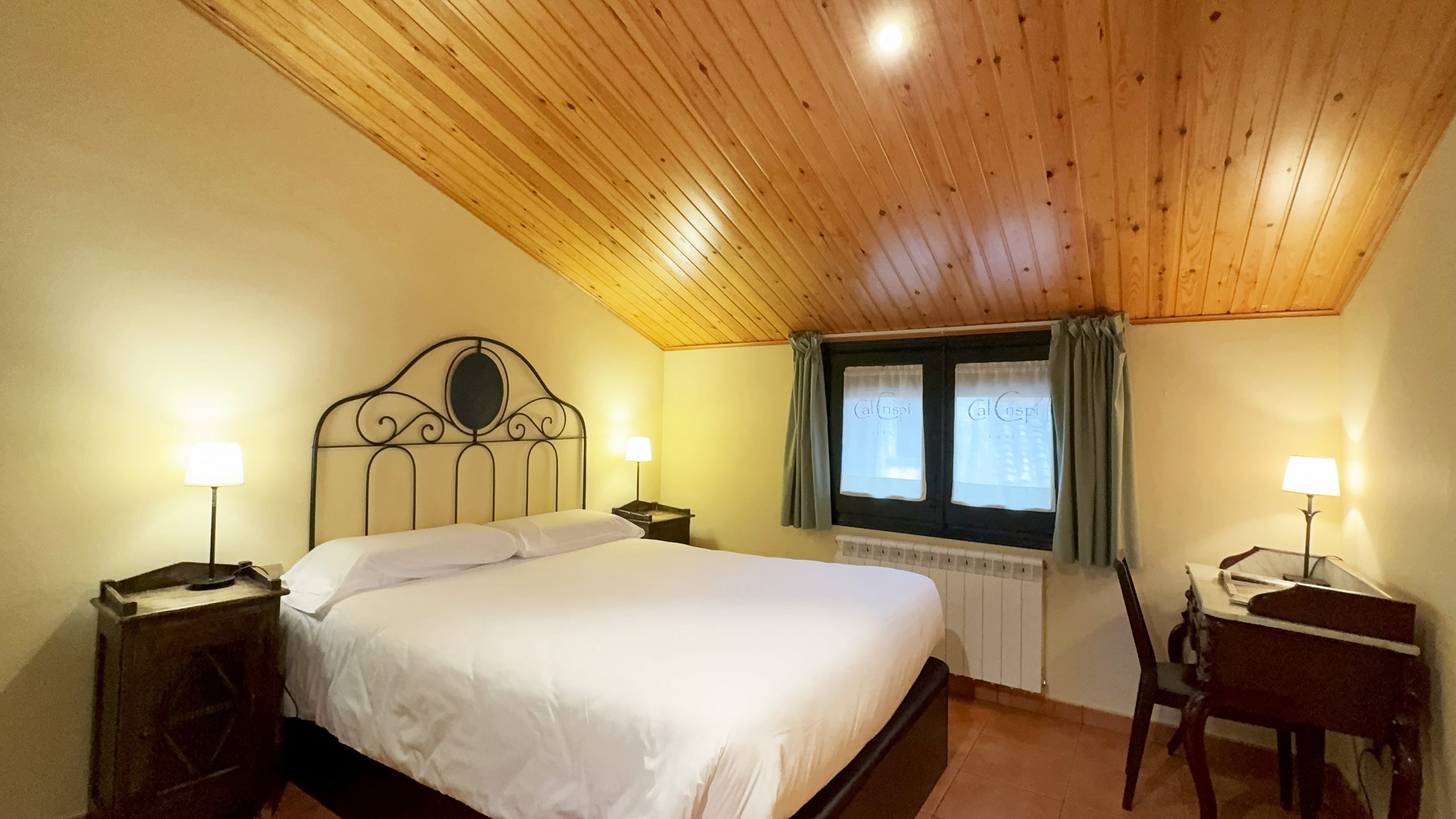 La Doble Campanar és una de les nostres estances més emblemàtiques a Cal Crispi. Amb unes vistes privilegiades al cor del poble, aquesta habitació combina l’elegància rústica amb totes les comoditats modernes que esperaries d’un hotel boutique de muntanya.